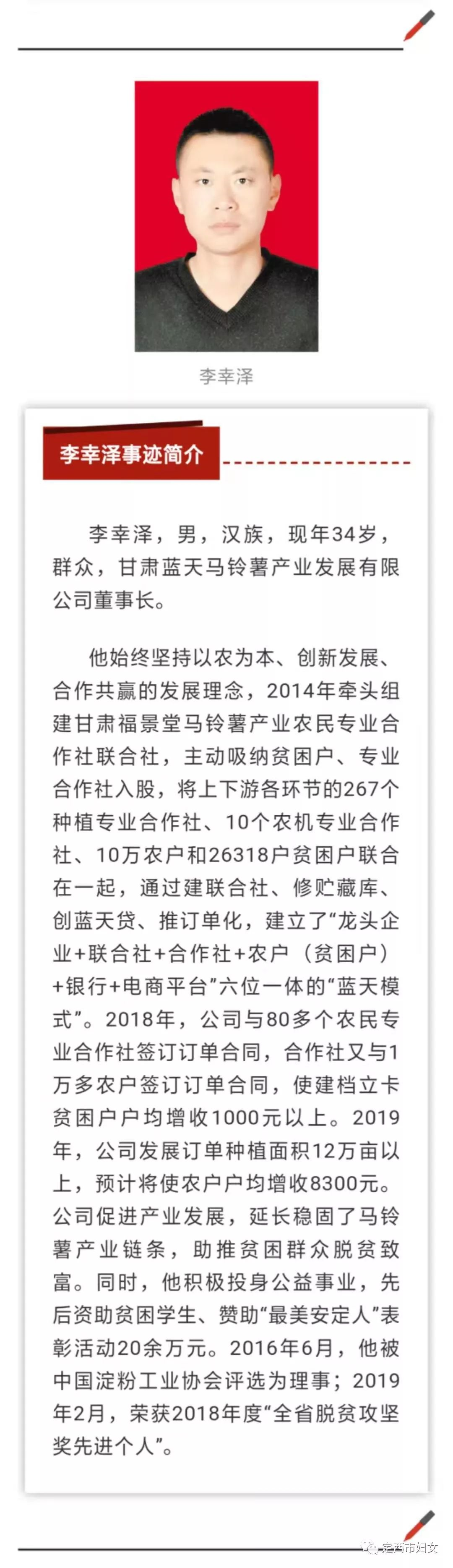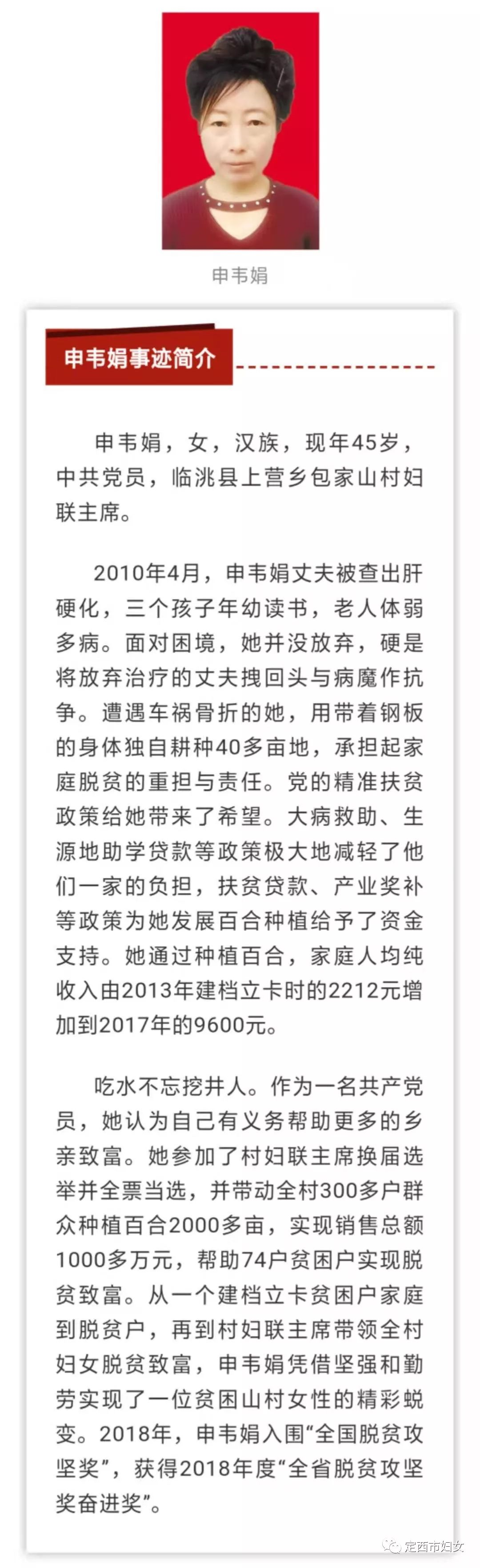 定西村妇联主席入选2019年第二批甘肃省“最美人物”
